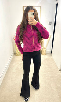 LAURA | Zip Fur Zig Zag Print Cardigan - Hot Pink Sale
