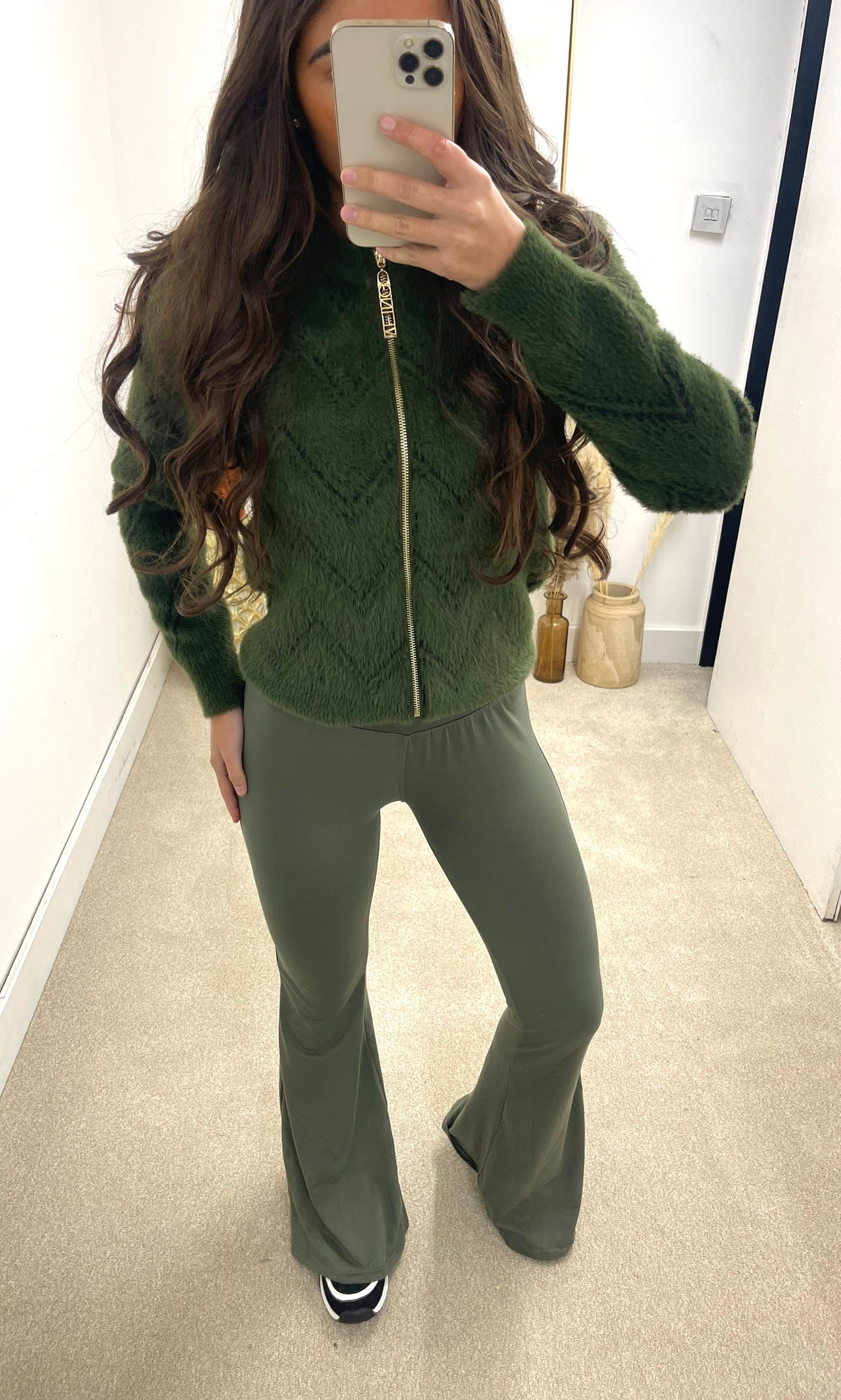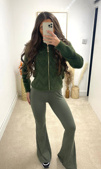 Inform when this item available: LAURA | Zip Fur Zig Zag Print Cardigan - Khaki - ONE SIZE (6-14)