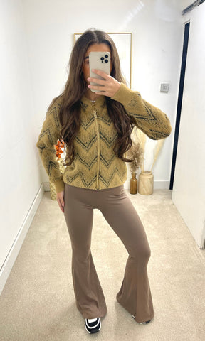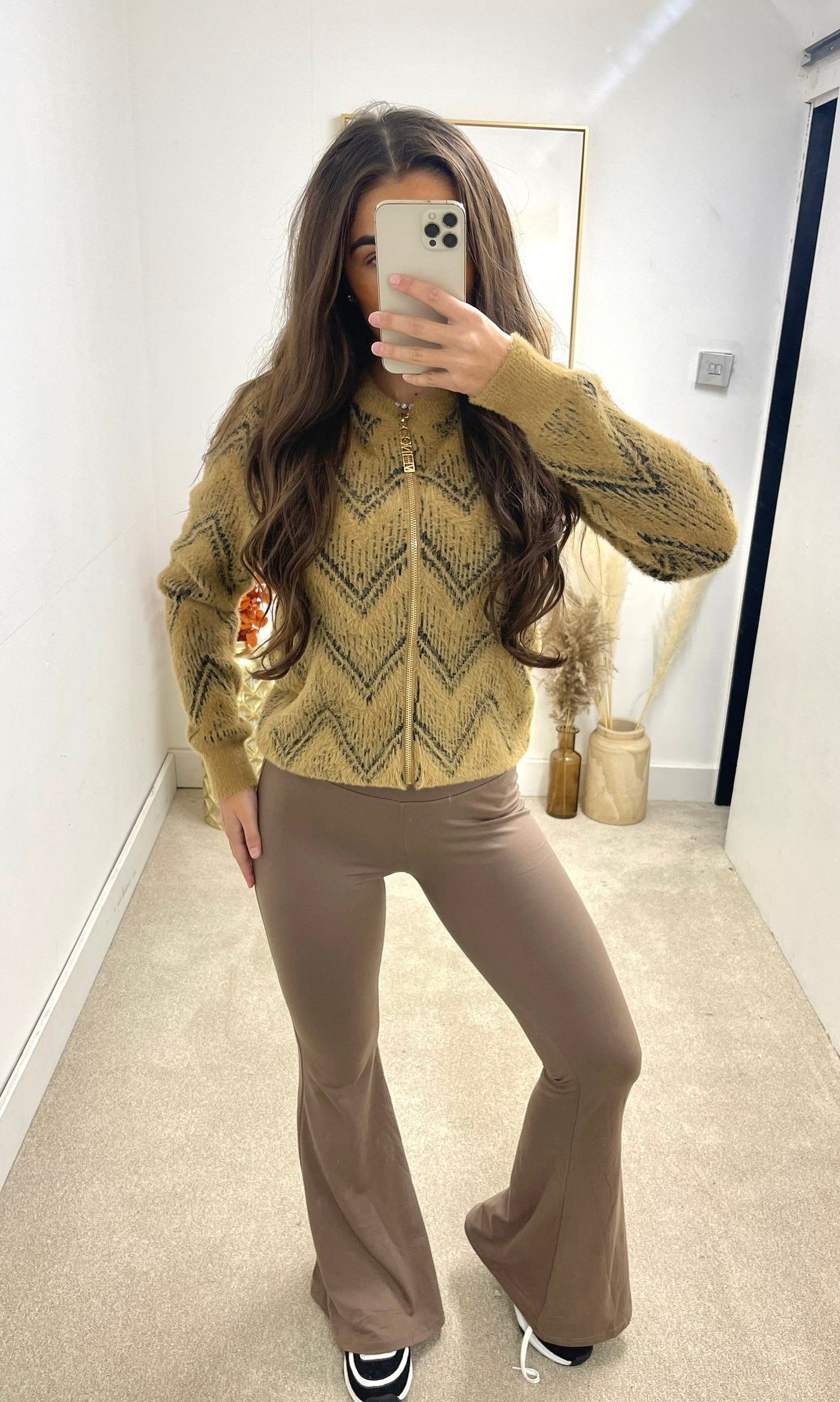 LAURA | Zip Fur Zig Zag Print Cardigan - Biscuit - ONE SIZE (6-14)