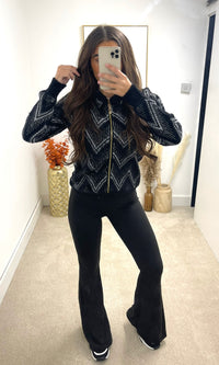 LAURA | Zip Fur Zig Zag Print Cardigan - Black Sale