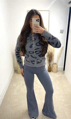Inform when this item available: Leopard | Zip Fur Leopard Print Cardigan - Grey - ONE SIZE (6-14)