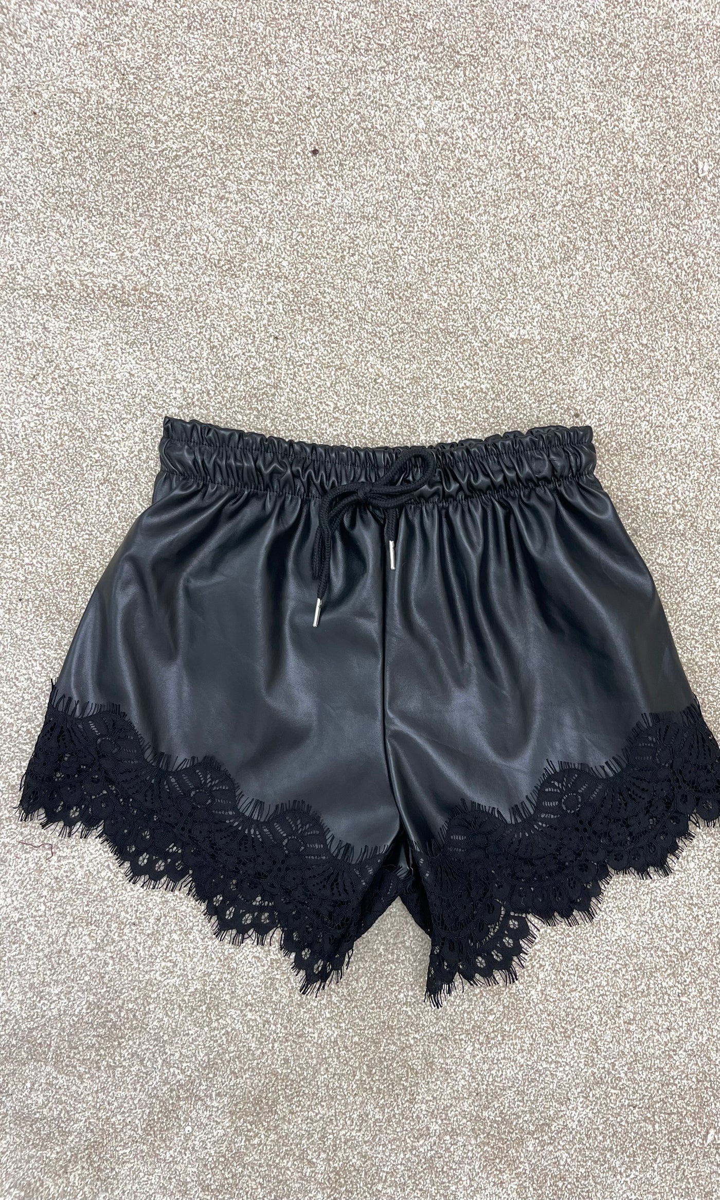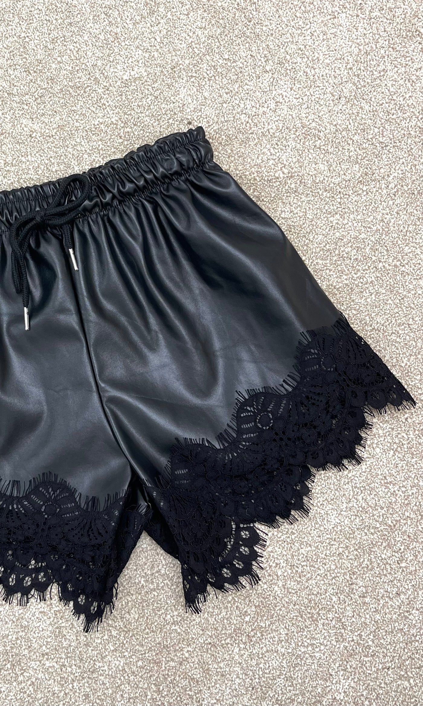 BELLE | Lace Trim Leather Shorts - Black - ONE SIZE (6-14)