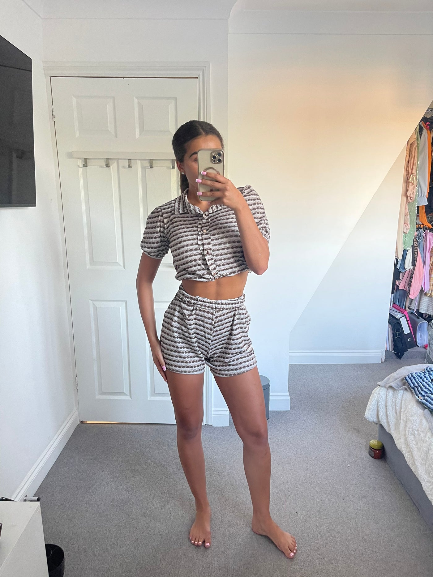 CASEY | Puff Sleeve Glitter Short Set - Mocha Sale