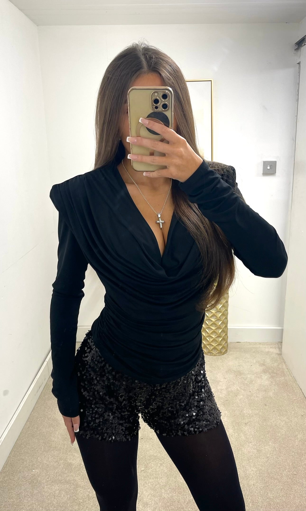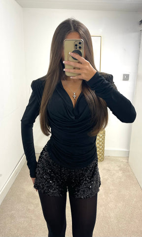 ESTELLE | Cowl Neck Padded Shoulder Top - Black Sale