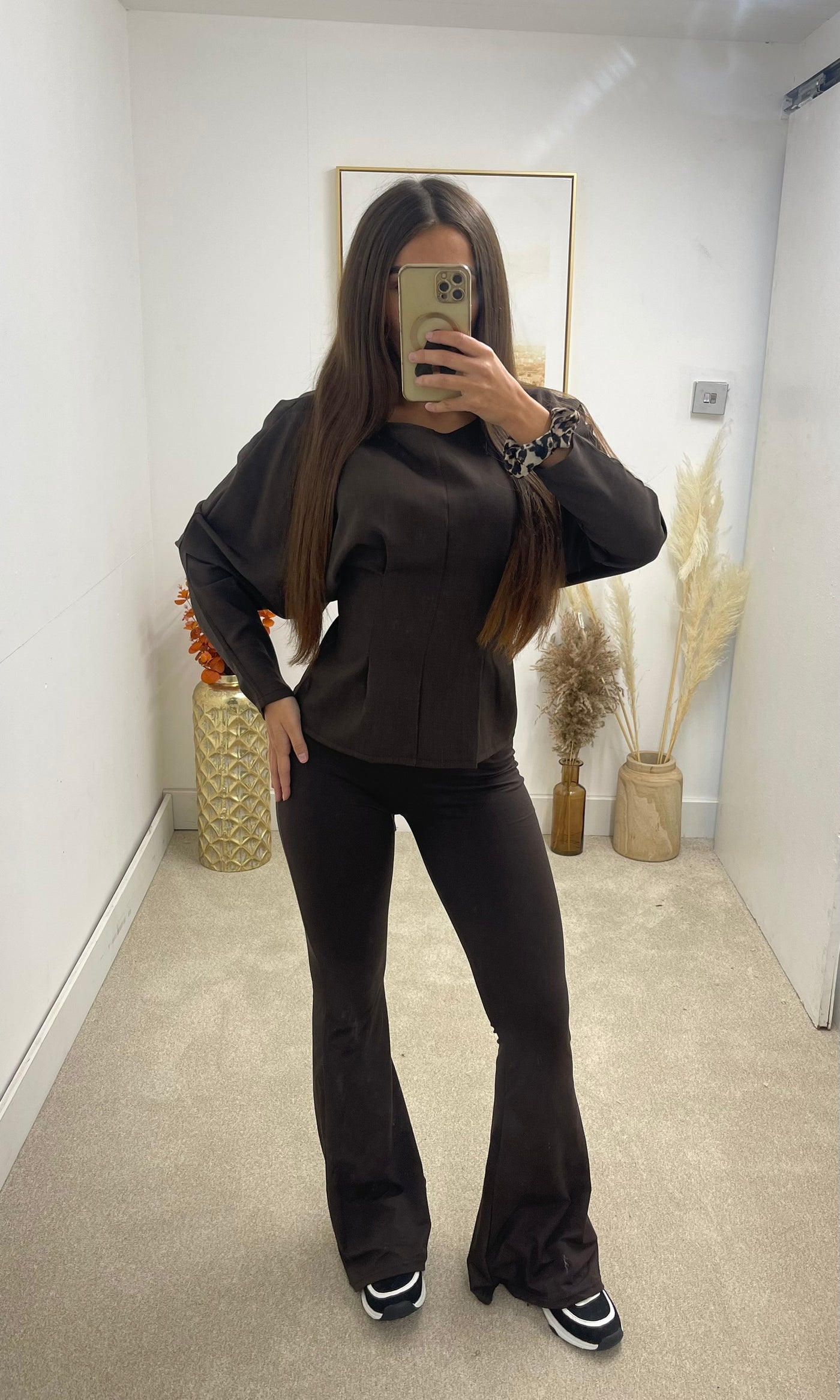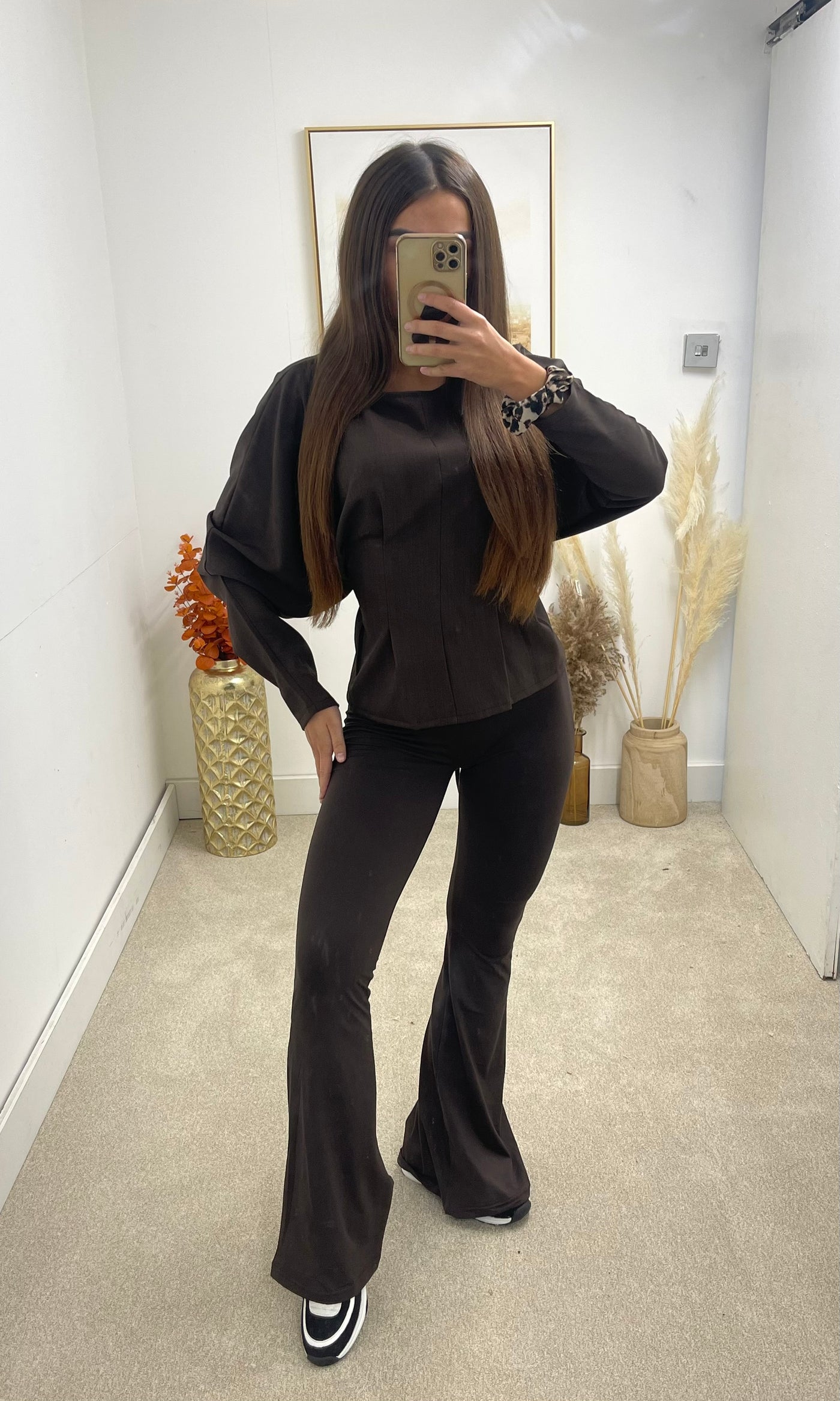Inform when this item available: LAUREN | Long Sleeved Tie Back Top - Chocolate - ONE SIZE (6-14)