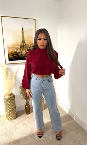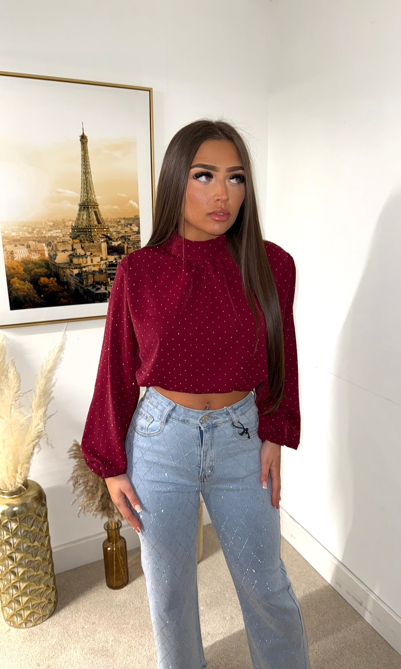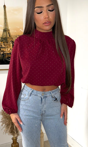Inform when this item available: LOTTIE | Diamanté Embellished Cinched Top - Wine - ONE SIZE (6-14)