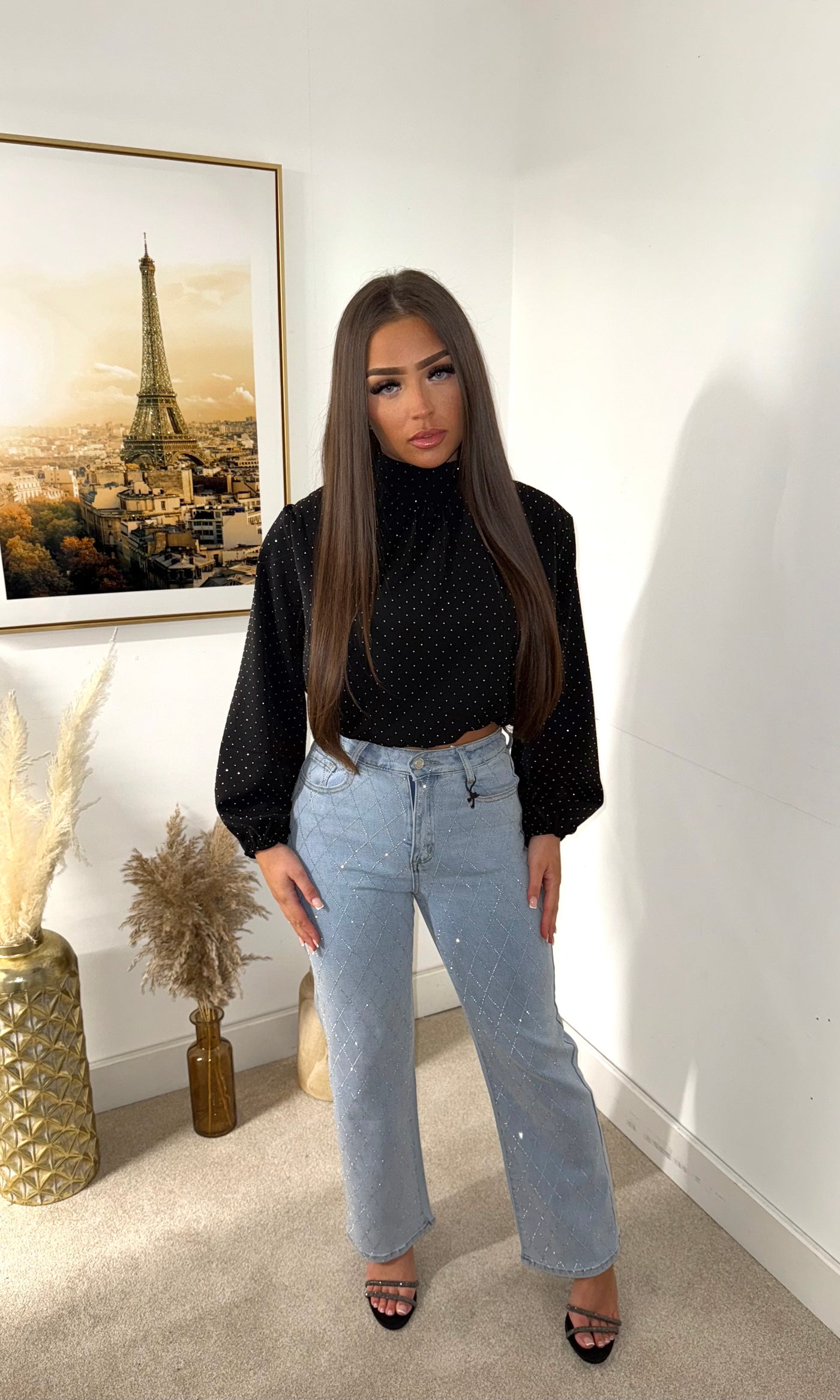 LOTTIE | Diamanté Embellished Cinched Top - Black Sale