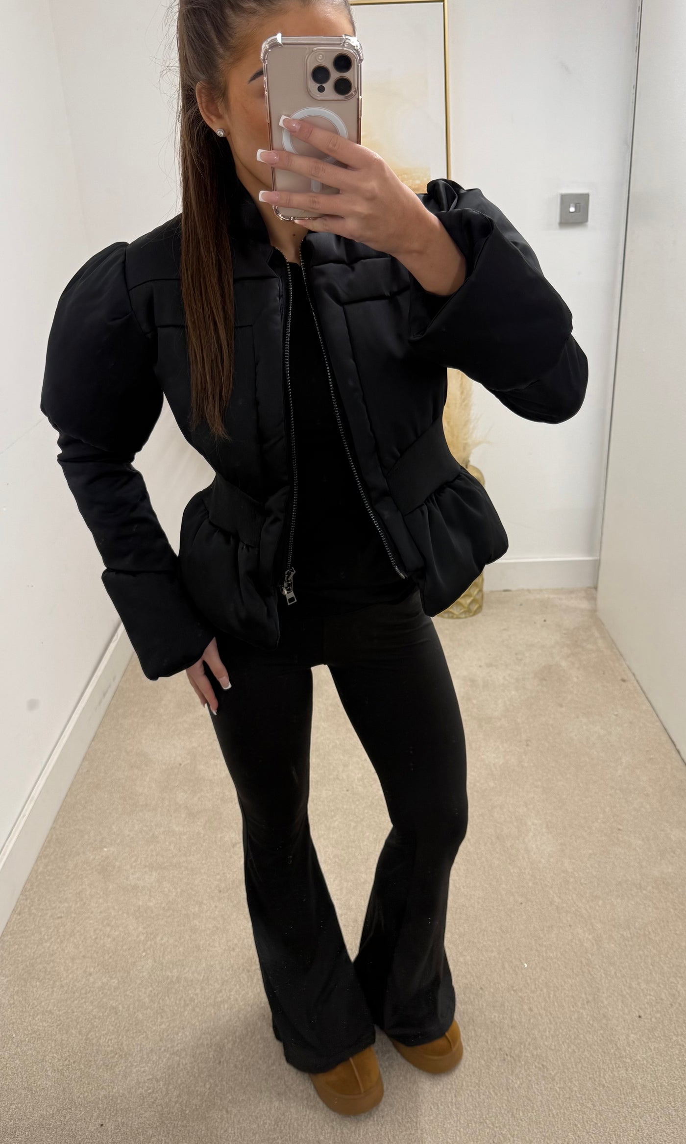 ARABELLA | Thread Waist Puff Coat - Black Sale